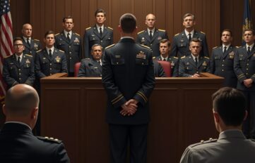 Uma corte marcial é um tribunal militar que julga membros das Forças Armadas por crimes. Ela opera sob regras diferentes do sistema civil.